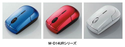 「M-D14URシリーズ」は、2.4GHz帯ワイヤレス方式を採用する無線マウス。最長約10m、スチールデスクなど磁性体の場所でも最長約3m離れて操作が可能。「M-LS3URシリーズ」と同じく「チルトホイール」を搭載した。電源は単3乾電池1本。本体カラーはエストブルー、スュードルージュ、ウェストブランの3色。