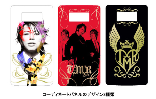 コーディネートパネルは、顔写真と花を組み合わせたものや、T.M.Revolutionのロゴを組み合わせたものなど3枚が付属。メニュー画面のデザインや、待ち受け画面のアイコンなどもカスタマイズした。本体色はシャンパンゴールド。オリジナル限定Tシャツも同梱する。