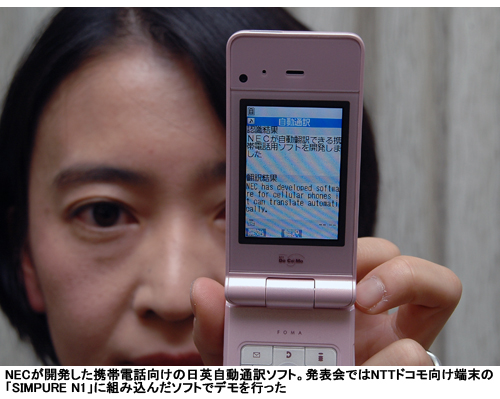 NEC、ケータイだけで日本語-英語を瞬時に自動通訳するソフトを開発