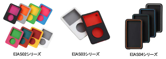 ラインアップは、第3世代iPod nano用の「EIAS02シリーズ」、iPod Classic用の「EIAS03シリーズ」、iPod Touch用の「EIAS04シリーズ」で、価格はいずれもオープン。実勢価格は「EIAS02シリーズ」が1980円前後、「EIAS03シリーズ」「EIAS04シリーズ」は2480円前後の見込み。