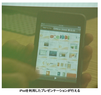 「PowerPoint 2008」は、Macの純正アプリケーションを意識したデザインインターフェイスを採用。新たにツールパット機能や「Smart Art」機能を搭載し、DTPソフトのようなデザインの細かな調整が可能になった。約60個のスライドテーマを用意したほか、クリップアートも新たに約100種類追加。完成したスライドショーをアップル純正の写真管理ソフト「iPhoto」に書き出し、iPodに転送してプレゼンテーションを行うこともできる。
