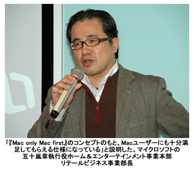 製品発表会で、五十嵐章執行役ホーム&エンターテインメント事業本部リテールビジネス事業部長は、新バージョンについて「Macにおいて究極の生産性と互換性を実現した点、Macテイストを考慮したユーザーインターフェイスやiPodへの転送を可能にした点、家庭用エディションを初めて用意したことの3つがポイント」とアピールした。