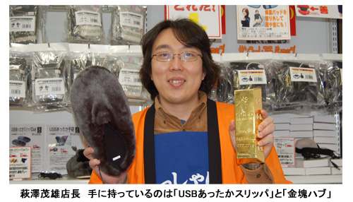 「サンコーの商品は社員のひらめきによって開発されたものばかりです。あったら便利だな、あったら面白いな、と思うものを揃えています。これからも買った人が自慢できるような商品を開発していきますよ」と萩澤店長は笑顔で話した。さらに目標を尋ねると「池袋1のヘンな店、ミョーな店を目指します」とのこと。もちろんヘンな商品だけではなく、便利なグッズも揃えている。