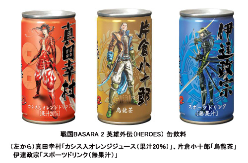 アプリス、「戦国BASARA 2 英雄外伝(HEROES)」をモチーフにした缶飲料