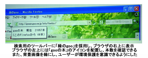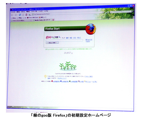 発表会見でNTTレゾナントの浅田安茂・ポータル事業本部メディア事業部長は「今日は(温室効果ガスの削減を目指す)京都議定書の議決から10周年の日。緑のgoo版 Firefoxでユーザーと一緒に少しでも環境保護に貢献していきたい」と述べた。
