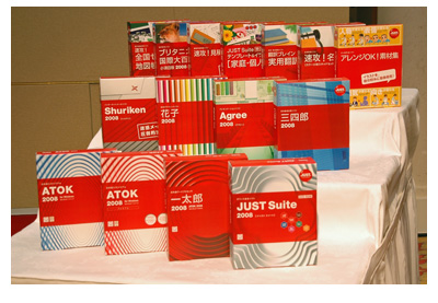 価格は、単品で「一太郎2008」が2万1000円、「ATOK 2008 for Windows [プレミアム]」が8400円、「三四郎2008」が5250円、「Agree 2008」が8190円、「花子2008 [書籍セット]」が1万290円、「Shuriken 2008」が5040円。