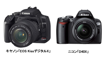 まず最新の売れ行きを機種別でみていこう。12月10?16日の1週間で上位10機種のランキングを作成した。1位と2位はキヤノンとニコンのエントリーモデル「EOS KissデジタルX」「D40x」がそれぞれランクインしている。