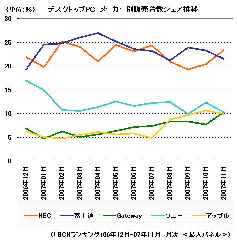 ●NECと富士通が接戦、アップルとGatewayはシェア倍増