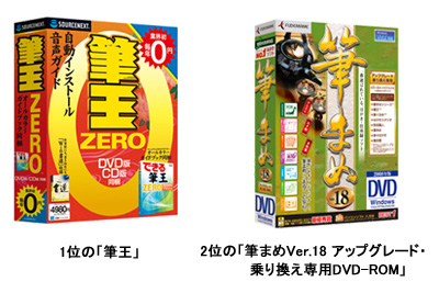 シェア16.7%で2位に入ったクレオの「筆まめVer.18 アップグレード・乗り換え専用DVD-ROM」は、とにかく早く作りたい、もう考えている余裕も時間もないという人向けにはお勧めだ。わずか5つのステップで簡単に裏面のデザインができあがる「特急デザイナー」機能を搭載している。またキーボード操作が不慣れな人でもマウスのクリックで住所入力ができる「ソフトウェアキーボード」も備えている。「筆まめ」シリーズは、5位までDVDの通常版やCDの乗り換え版などがランクインした。価格はCD・DVD共に通常版が5355円、アップグレード・乗り換え専用が3675円。