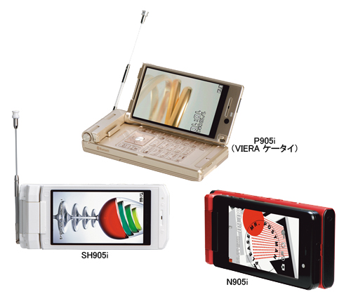 「P905i」は、縦横両方に開ける「Wオープンスタイル」を採用し、ワンセグやフルブラウザを快適に使用できる。薄型テレビ「VIERA(ビエラ)」の高画質技術を携帯電話用に活用した画像処理回路「モバイルPEAKSプロセッサー」を搭載。ワンセグの映像を高画質で楽しめる。有効510万画素のカメラ、Bluetoothなど、ワンセグ以外の機能も充実している。カラーは「ブラック」「ホワイト」「レッド」「ピンクゴールド」。