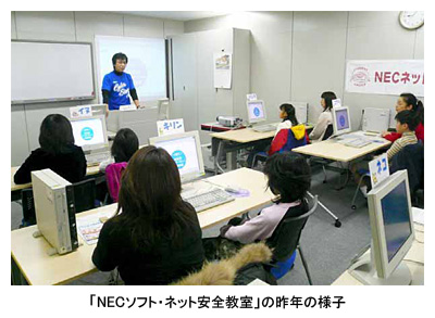 「NECソフト・ネット安全教室」は、小学校3年生から6年生の児童とその保護者を対象にした、インターネットのマナーやルールを身につけ、ネット犯罪に巻き込まれないようにするための教育プログラム。