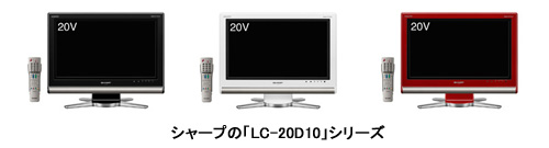 「LC-20D10」シリーズは、アスペクト比16:9のワイド液晶を採用した20V型の液晶テレビ。輝度は500cd/m2、視野角は上下左右とも176度、コントラスト比は1200:1。解像度は1366×768画素で、きめ細かい画質を再現する。