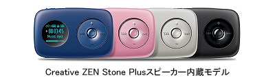 クリエイティブメディアは1月16日、携帯オーディオ「CREATIVE ZEN」シリーズで、スピーカーを内蔵した「CREATIVE ZEN STONE」「CREATIVE ZEN STONE PLUS」を2月上旬に発売すると発表した。価格はオープンで、直販サイト「クリエイティブストア」価格は、「CREATIVE ZEN STONE」の2GBモデルが6980円、1GBモデルが4980円。「CREATIVE ZEN STONE PLUS」の2GBモデルが8800円。