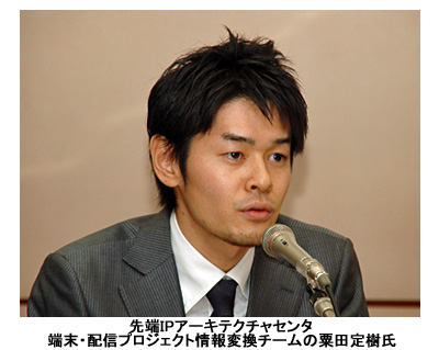 先端IPアーキテクチャセンタの端末・配信プロジェクト情報変換チームの粟田定樹氏は、「近年、難聴者が増加しており、生放送番組においても字幕放送の必要性が高まっている。また、放送局側からも、番組制作スタッフの確保が困難であるという声を聞いていた。今回の実用化は、そういった問題の解決策」とシステム開発の背景を語った。