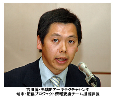 吉川博・先端IPアーキテクチャセンタ端末・配信プロジェクト情報変換チーム担当課長は「字幕放送は、いまやどんなときでも利用できるユニバーサルサービス。今回のシステムが、我々が培ってきた技術を還元する場にしたい」と挨拶した。