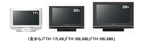 松下電器産業は1月21日、同社の薄型テレビ「VIERA(ビエラ)」で、17、20、26V型の液晶テレビを2月15日に発売すると発表した。価格はオープンで、実勢価格は17V型の「TH-17LX8」が7万円前後、20V型の「TH-20LX80」が11万円前後、26V型の「TH-26LX80」が15万円前後の見込み。