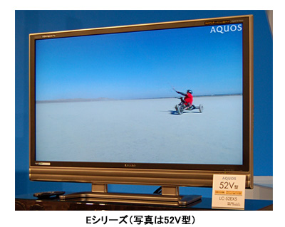 「Eシリーズ」は倍速フルHDパネルを搭載したフルHD映像へのエントリーモデルでコントラスト比は15000:1。明るい場所で視聴しても、画面の映り込みを軽減する低反射パネルを採用した。ブラウン管テレビからの買い換え需要を狙う。画面サイズは、52V、46V、42V、37V型で、実勢価格は52V型が45万円前後、46V型が40万円前後、42V型が36万円前後、37V型が26万円前後。発売日は3月1日。