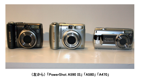 「PowerShot A590 IS」「A580」は、「PowerShot」シリーズのスタンダードモデルで有効画素数は800万画素。光学4倍ズームレンズを搭載する。「A590 IS」には光学式手ブレ補正機能を搭載。「『らくらく』モード」を追加し、カメラに不慣れな初心者でも誤動作や設定ミスを防いで簡単に撮影できるのが特徴。フルバッテリーからの連続撮影枚数と重さは「A590 IS」が200枚で、175g、「A580」が220枚で175g。