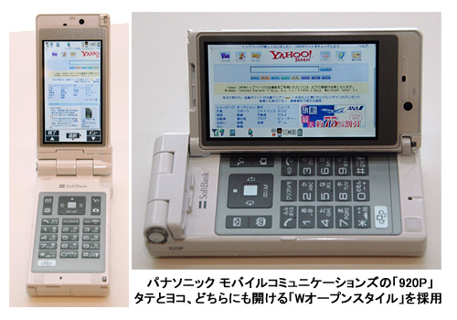 「920P」は、松下電器産業の薄型テレビ「VIERA(ビエラ)」の液晶技術を使ったワンセグケータイ。3インチのフルワイドVGA液晶と有効507万画素のCMOSカメラを搭載した。