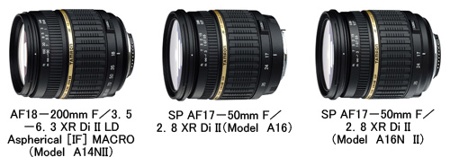 併せて同社は、ニコン用とペンタックス用のレンズ2本も発表した。「AF18-200mm F/3.5-6.3 XR Di II LD Aspherical[IF]MACRO(Model A14NII)」がニコン用で価格は6万9300円。「SP AF17-50mm F/2.8 XR Di II LD Aspherical[IF](Model A16)」はペンタックスとニコン用で5万7750円。