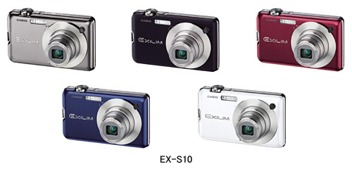 「EXILIM CARD EX-S10」は、有効1010万画素の高精細CCDと、高コントラスト比・広視野角・高輝度の「高性能クリア液晶」を搭載。35ミリフィルムカメラ換算で36-108mmの光学3倍ズームレンズを搭載する。カラーはシルバー、ブラック、レッド、ブルー、ホワイトの5色。本体サイズは幅94.2×高さ54.6×厚さ15.0mm(最薄部13.8mm)、重さは113g。