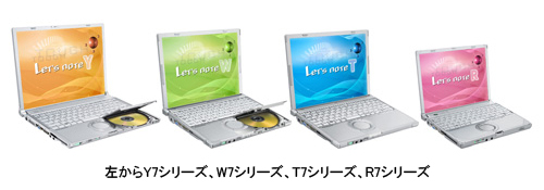光学ドライブについては、Y7/W7シリーズは、DVDスーパーマルチドライブを内蔵。T7/R7シリーズは非搭載。また、各シリーズとも、台数限定で統合ビジネスソフト「Office Personal 2007with PowerPoint 2007」搭載モデルも用意する。価格はいずれもオープン。実勢価格は、オフィスソフトなしの場合で、「Y7シリーズ」が26万9800円前後、「W7シリーズ」が24万9800円前後、「T7シリーズ」が21万9800円前後、「R7シリーズ」が19万9800前後の見込み。