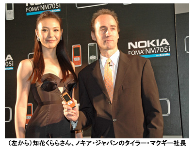 ノキア・ジャパン、「NM705i」の発表会を開催、知花くららさんも登場