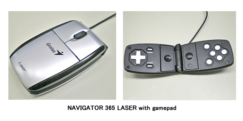 ゲームコントローラーを内蔵したレーザーマウス。マウスを開くと、その内側に十字キーやボタンなどを装備しており、ゲームコントローラーとして使用できる。