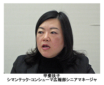 シマンテックの甲斐扶子・コンシューマ広報部シニアマネージャは「日本のネットユーザーは、ネットトラブルに関する認識はあるものの、何か具体策を実行する人たちが少ない」と分析し、ネット上のトラブルに対しては、実際に行動を起こすことが大切だとの認識を示した。