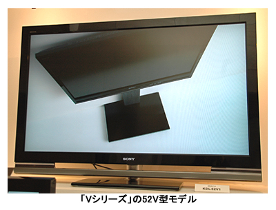 「V1シリーズ」は、52V、46V、40V型の全てでフルHDパネルを採用。「モーションフロー」機能でなめらかな動きを再現する。「ライブカラークリエーション」には未対応。入力端子にはHDMI×2、D5×2、PC入力×1。コントラスト比は3000:1で、視野角は上下左右178度。実勢価格は52V型が46万円前後、46V型が37万円前後、40V型が26万円前後の見込みで、発売日は4月25日。
