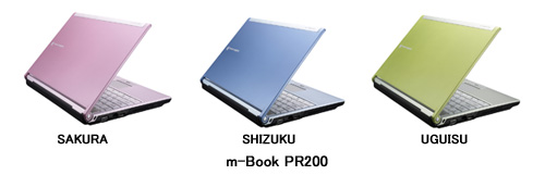 新モデルは、インテルの最新45nm Hi-Kプロセス採用モバイルプロセッサーを採用するとともに、「SAKURA(ピンク)」、「SHIZUKU(ブルー)」、「UGUISU(グリーン)」の3色のカラーバリエーションを用意した。