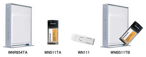 「WNR854TA」は、最大理論値300Mbps、実効スループット153Mbpsを実現する無線LANブロードバンドルータ。MIMOアンテナを3本内蔵し、安定して高速、広範囲での通信が行える。またMIMOアンテナを2本内蔵したUSBタイプの無線LANアダプタ「WN111」も新たにラインアップ。PCカードスロットのないデスクトップパソコンでも、簡単に無線LANを導入できる。なお、4製品とも3年保証と365日カスタマーサポートを提供する。