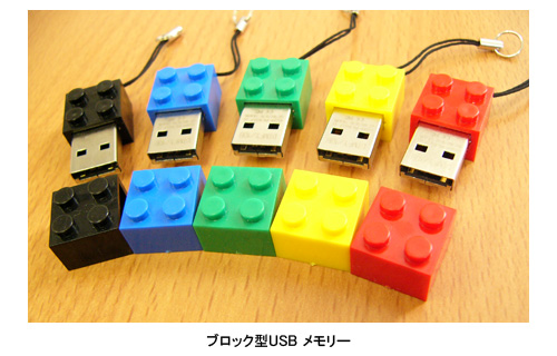 2×4のブロック型きょう体を採用したUSBメモリ。市販されている一部のブロックと組み合わせることができるので、動物の形などに組み上げることが可能。また、本体に紐が取り付けてあり、ストラップヤキーホルダーとして持ち歩きができる。