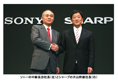 一方ソニーは、04年に韓国のサムスン電子と液晶パネルを製造する合弁会社「S-LCD」を設立しているが、「液晶テレビの数量の拡大と共に大型化と価格競争力の強化に向けてもう1つの基幹供給源を確保したかった」(中鉢社長)と説明。最新の第10世代のマザーガラスを使用した液晶パネル工場を世界で初めて稼動させるシャープを「戦略的なパートナー」として選択したと明らかにした。