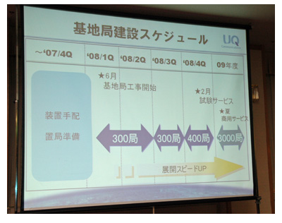 08年度は基地局の整備に注力する。09年2月までには1500局を設置する予定で、「基地局の設置は可能な限り前倒しする」(同)という。基地局の建設には12年度末までに合計で1500億円を投じる見込み。
