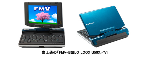 さらに、コンパクトさを求めるなら、富士通の「FMV-BIBLO LOOX U50X/V」。ディスプレイサイズは5.6インチワイドで、重さは約599g。ディスプレイが180度回転するコンバーチブル型構造を採用し、画面を回転させてれば、ペン操作で閉じた状態でも操作できる。ワンセグチューナーを搭載するので、ワンセグ端末としても使用できる。