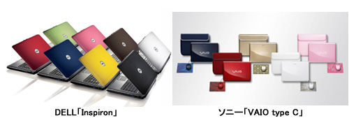 「VAIO typeC」シリーズはプレシャスゴールド、ラグジュアリーピンクといった個性的なカラー5色を用意。同じ色のキャリングケースも付属する。DELLの「Inspiron」シリーズでは、クール・ブラック、インテリジェント・ブルー、クラシック・レッドなど合計8色の中から自分に合ったカラーを選ぶことができる。
