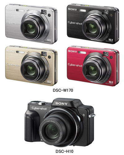ソニーは3月5日、コンパクトデジタルカメラ「サイバーショット」で、有効1010万画素の光学5倍ズームレンズを搭載する「DSC-W170」と、有効810万画素の光学10倍ズームレンズを搭載する「DSC-H10」を、4月11日に発売すると発表した。価格はいずれもオープンで、実勢価格はともに4万円前後の見込み。