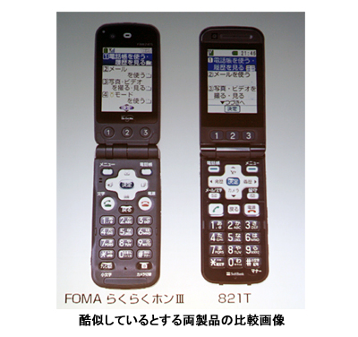 3月8日に発売した東芝製のソフトバンクモバイル向け端末「かんたん携帯 Sonftbank 821T」が、06年9月に発売した富士通製のドコモ向け端末「らくらくホン III」と外観やコンセプトなどが総合的に酷似しているというもの。