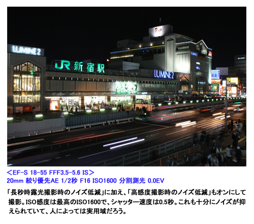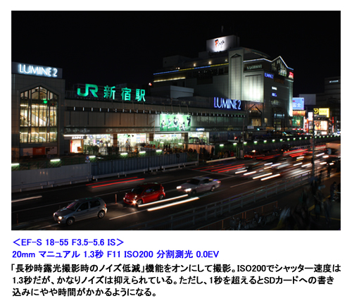 このほか、高ISO感度での撮影時に暗部のノイズを低減する「高感度撮影時のノイズ低減」機能や、シャッター速度が1秒よりも遅くなったときの画像の荒れを抑える「長秒時露光撮影時のノイズ低減」機能も上位モデルから受け継ぎ、より簡単・手軽に、ノイズの少ないきれいな画像が得られるようになった。