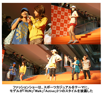 スポーツカジュアルをテーマにしたファッションショーでは、「RUN」「Walk」「Active」と3つ利用シーンを想定したスタイルを披露。ショーの最後には、相沢さんがスポーツカジュアルな装いで登場した。続くトークイベントには宮崎選手も加わり、スポーツや健康、ファッションなどについて語った。