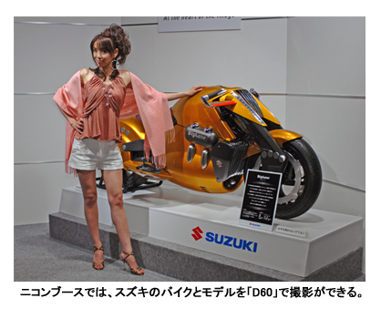 ●ニコンブースではスズキのバイクとモデルを「D60」で撮影!