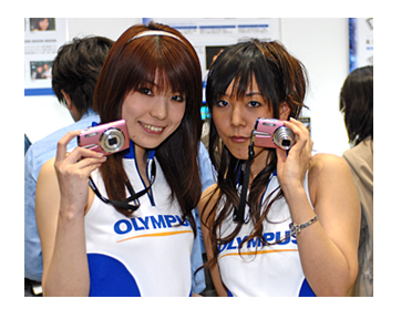 オリンパスのブースでは、同社のデジタル一眼レフシステム「Eシステム」のデジタル一眼レフを展開する。ステージでは、新発売のコンパクトデジタルカメラ「μ1020」「μ1030SW」などをフィーチャーして、来場者に紹介。カラーバリエーションの豊富さも魅力だ。その点もしっかりアピールしていた。