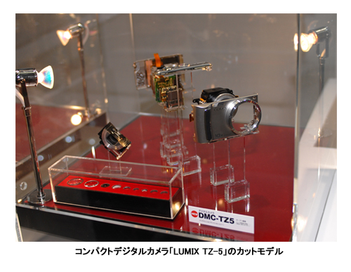 ステージの脇には、コンパクトデジタルカメラ「LUMIX DMC-TZ5」などのカットモデルを展示。松下が開発した独自の手ブレ補正機能をアピールするとともに、独ライカブランドのレンズ技術もPRしていた。