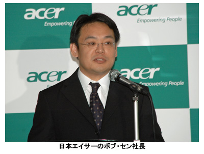 会見で日本エイサーのボブ・セン社長は「私たちは、世界のノートPC出荷台数では第2位だが日本ではまだ成功を収めていない。日本ではこの2年間、販路の整理とパートナーシップの強化に力を入れてきたが、次の段階として、『正しい商品を正しいタイミングで出す』ということが重要。今回のPCはまさにその考えに沿った第1弾製品だ」と述べた。また、夏以降に発売するフルハイビジョン対応の18.4型ワイド液晶搭載モデルも紹介した。