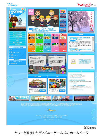 一方、ディズニーはホームページでヤフーから提供を受けた広告を配信するほか、「Yahoo!ゲーム」や「Yahoo!きっず」に「ディズニーゲームズ」のゲームコンテンツを提供する。