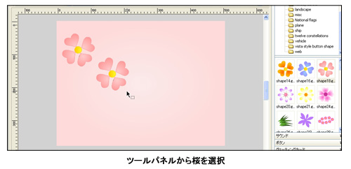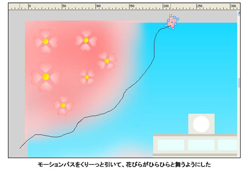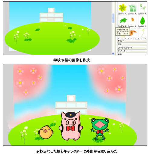 今回は入学・入園シーズンに合わせて、桜が舞い散る入学式のFlashアニメを作成してみた。ソフト付属のチュートリアルどおりにFlashを作成すれば簡単にできる。