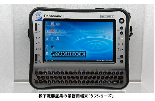 また、松下電器産業は業務用端末「タフシリーズ」を発表した。CPUの周波数、メモリ、記録媒体、通信機能は非公開。OSにはWindows Vista、XPを搭載する。業務用のため受注個数によって価格は異なるが、30万円前後を想定している。