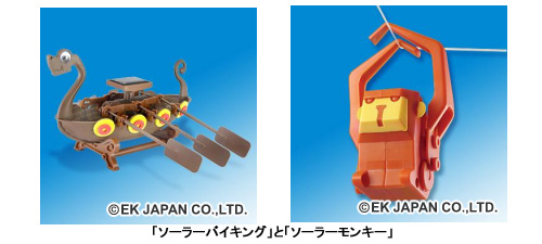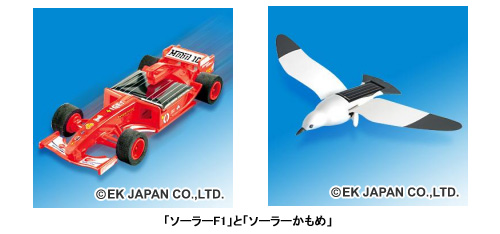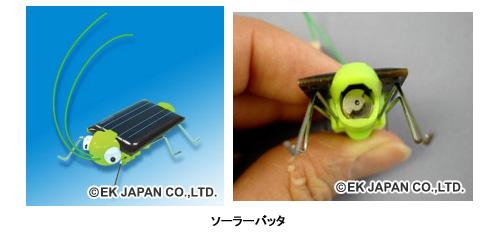 イーケイジャパンは、太陽電池を組み込み、バッタやカエルなどのおもちゃを動かすことができるソーラー工作キットを4月末から順次発売する。ラインアップと発売日は、「ソーラーバッタ」「ソーラーF1」「ソーラーかもめ」「ソーラーフロッグ」が4月末、「ソーラーロープウェイ」「ソーラーバイキング」「ソーラーモンキー」が5月末。