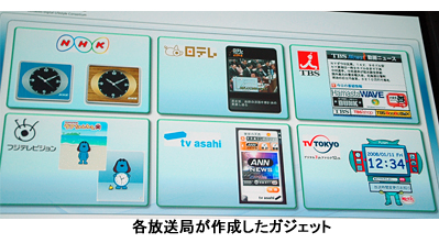 テレビ朝日、テレビ東京、東京放送、日本テレビ、NHK、フジテレビの各放送局がWindows Vista用のガジェットを作成。今後発売のNEC、MCJ、東芝、富士通の夏モデルPCにプリインストールするといった活動も展開。